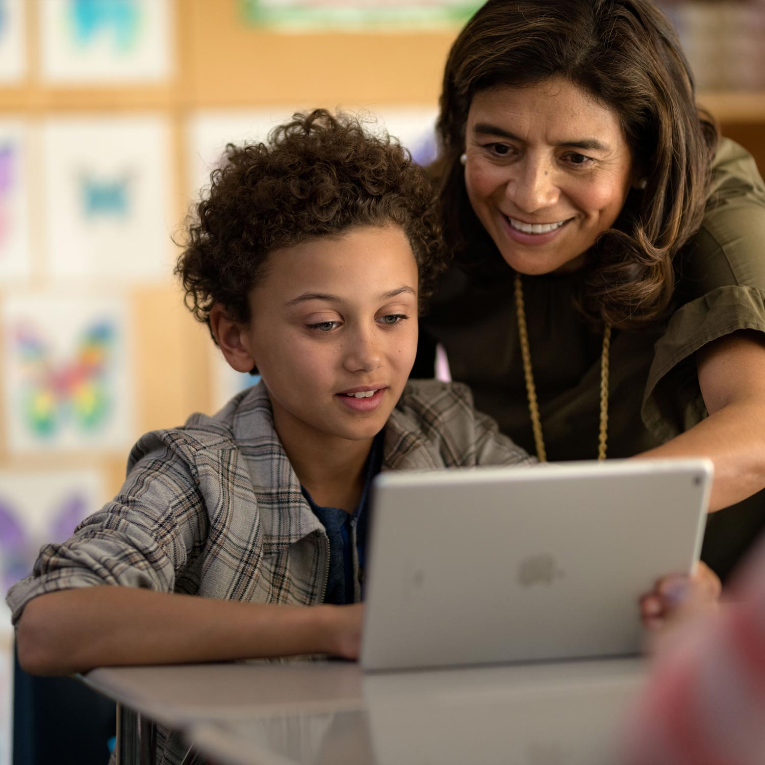 Unser Geschäftsmodell basiert nicht darauf, die Privatsphäre zu verletzen. Und bei Schulkindern ist uns das besonders wichtig. Wir wollen ihre Vorstellungskraft beflügeln – und nicht mit ihren Daten Geld machen. Alle Apple Produkte kommen mit integrierten Features für Datenschutz und Sicherheit. So erhalten die Schulen Geräte, Apps und Services, die die Infos und persönlichen Daten von Schüler:innen schützen. Wir verkaufen keine Daten von Schüler:innen und teilen sie niemals mit Dritten, um sie für Marketing oder Werbung zu nutzen. Und wir erstellen keine Profile basierend auf ihren E‑Mails oder ihrem Surfverhalten. Und mit verwalteten Apple IDs bleiben die Daten der Schüler:innen unter der vollen Kontrolle der Schule. So kann die Schule entscheiden, ob Apps, iMessage, FaceTime oder Berichte über den Fortschritt der Schüler:innen in der Schoolwork App aktiviert oder deaktiviert sein sollen.
